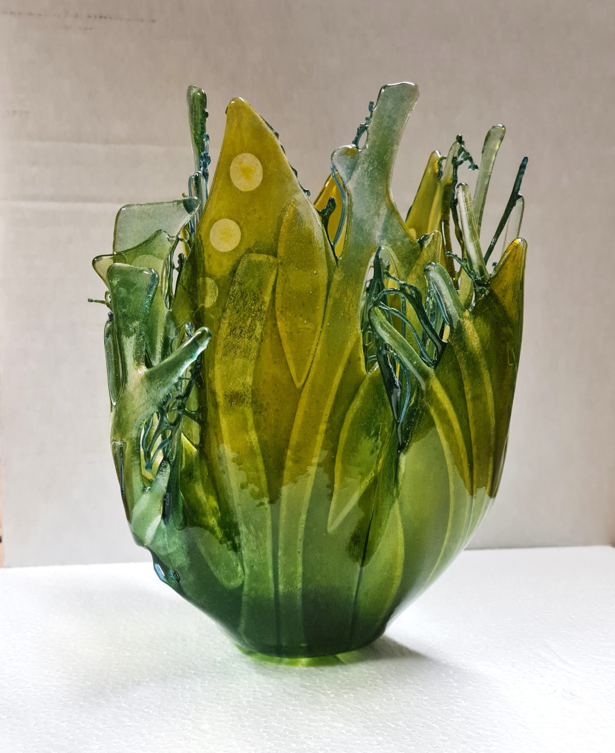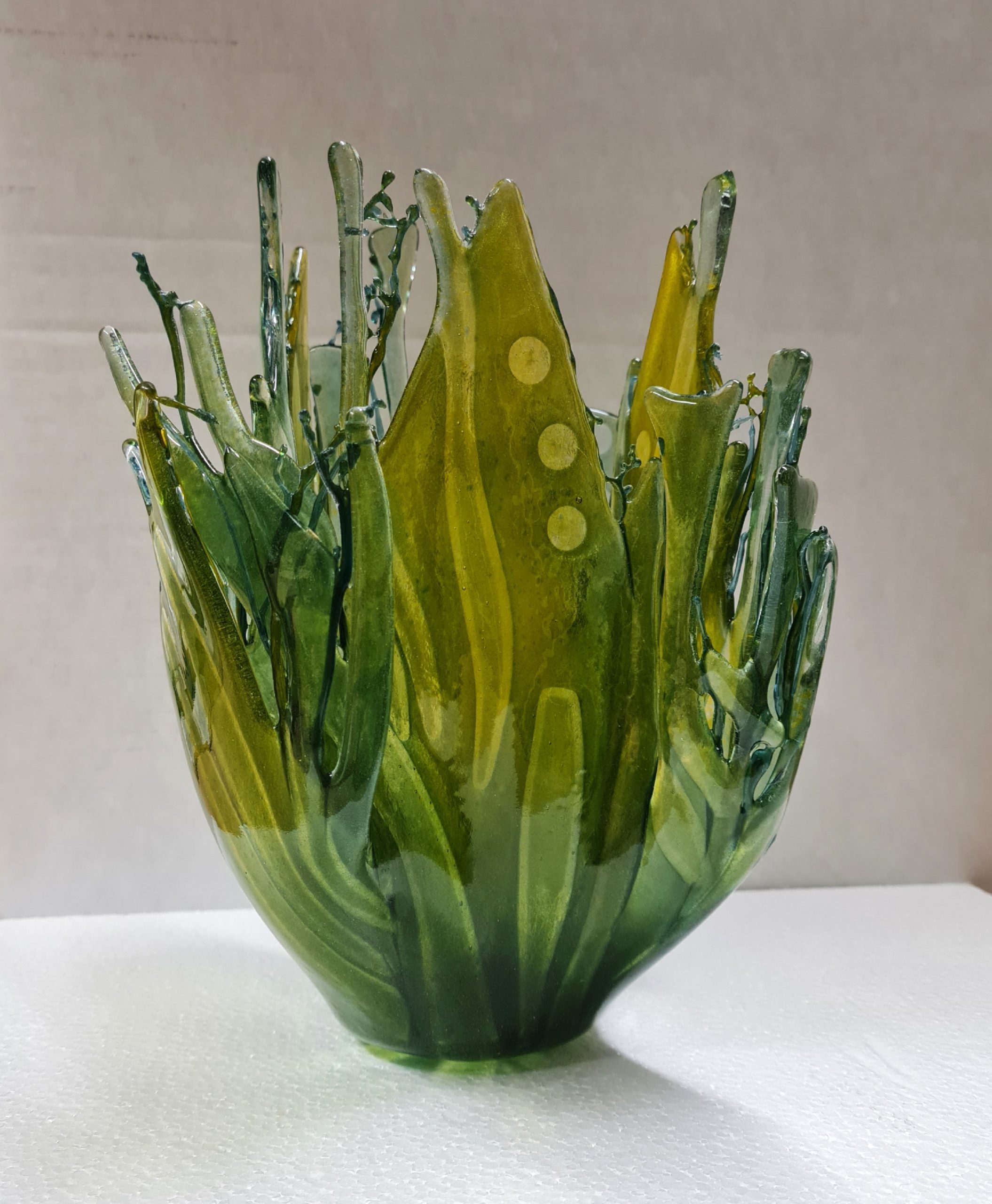 Moreover, Sunlit Seaweed Serenade is part of a series celebrating Australia’s coastal beauty. It reflects the artist’s commitment to slow craft, sustainable design, and the expressive potential of kiln-formed glass. In addition, each piece is shaped by hand and fire, ensuring its uniqueness and emotional resonance.